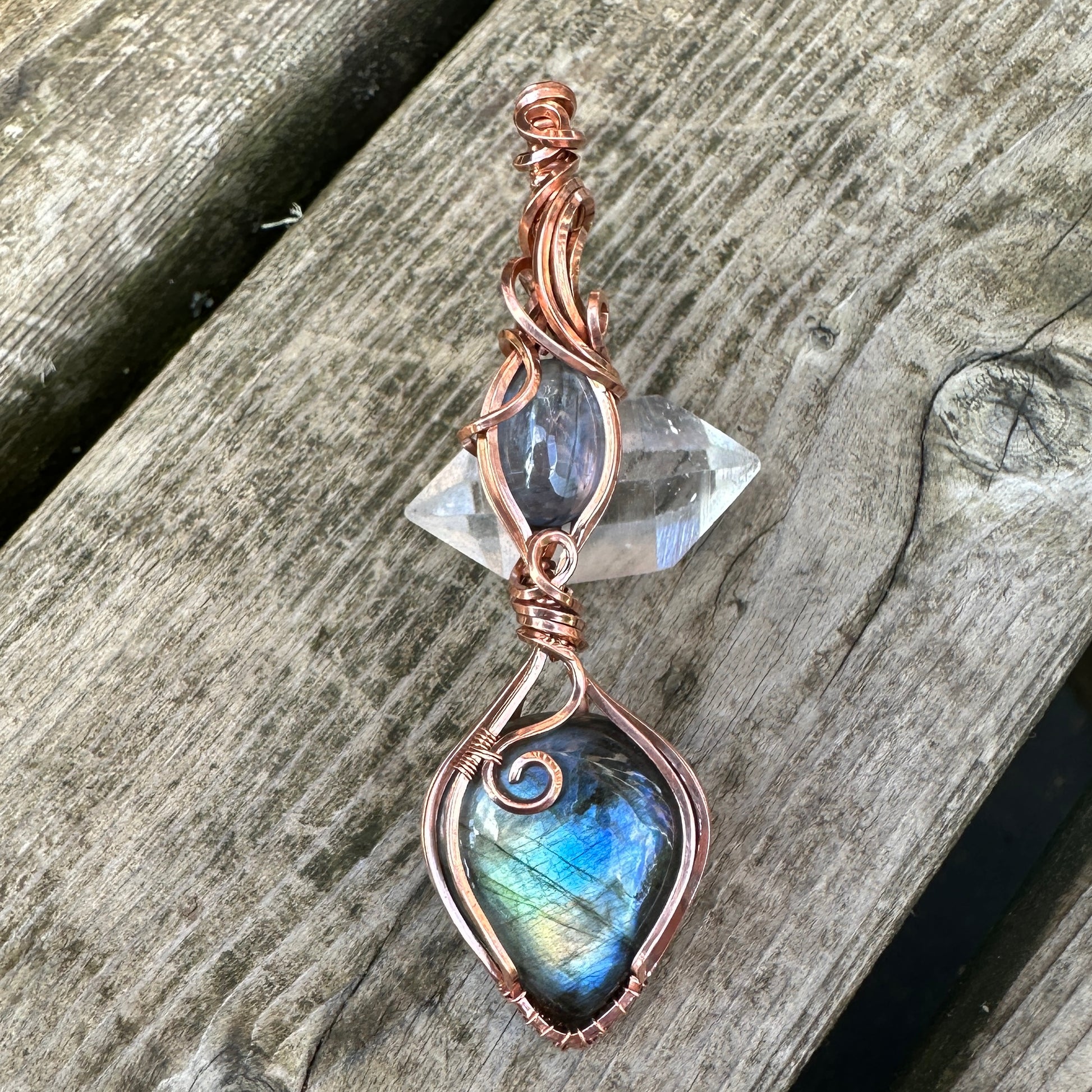 Labradorite x Kyanite Copper Wire Wrap Pendant