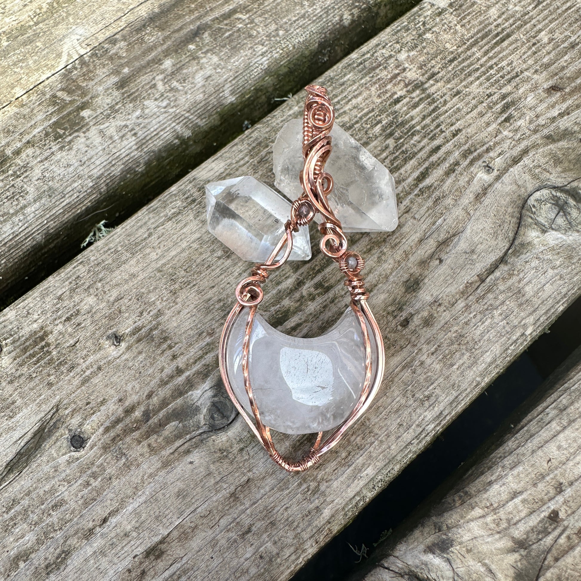 Quartz Moon Copper Wire Wrap Pendant